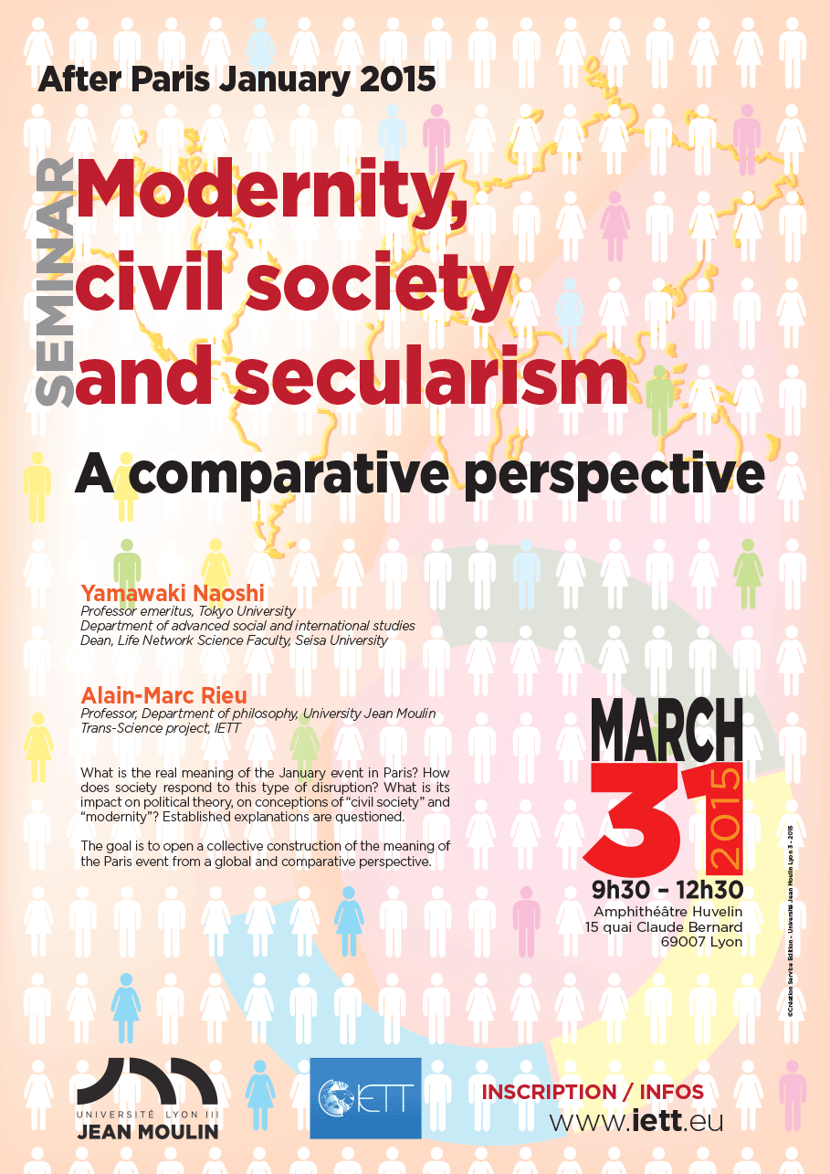 Séminaire organisé par l'Institut d'Etudes Textuelles et Transculturelles sur le thème : "Société civile, laïcité, modernité" avec Yamahi Naoshi, Professeur émérite, Tokyo University and Alain-Marc Rieu, Professeur de Philosophie, Université Jean Moulin Lyon 3.