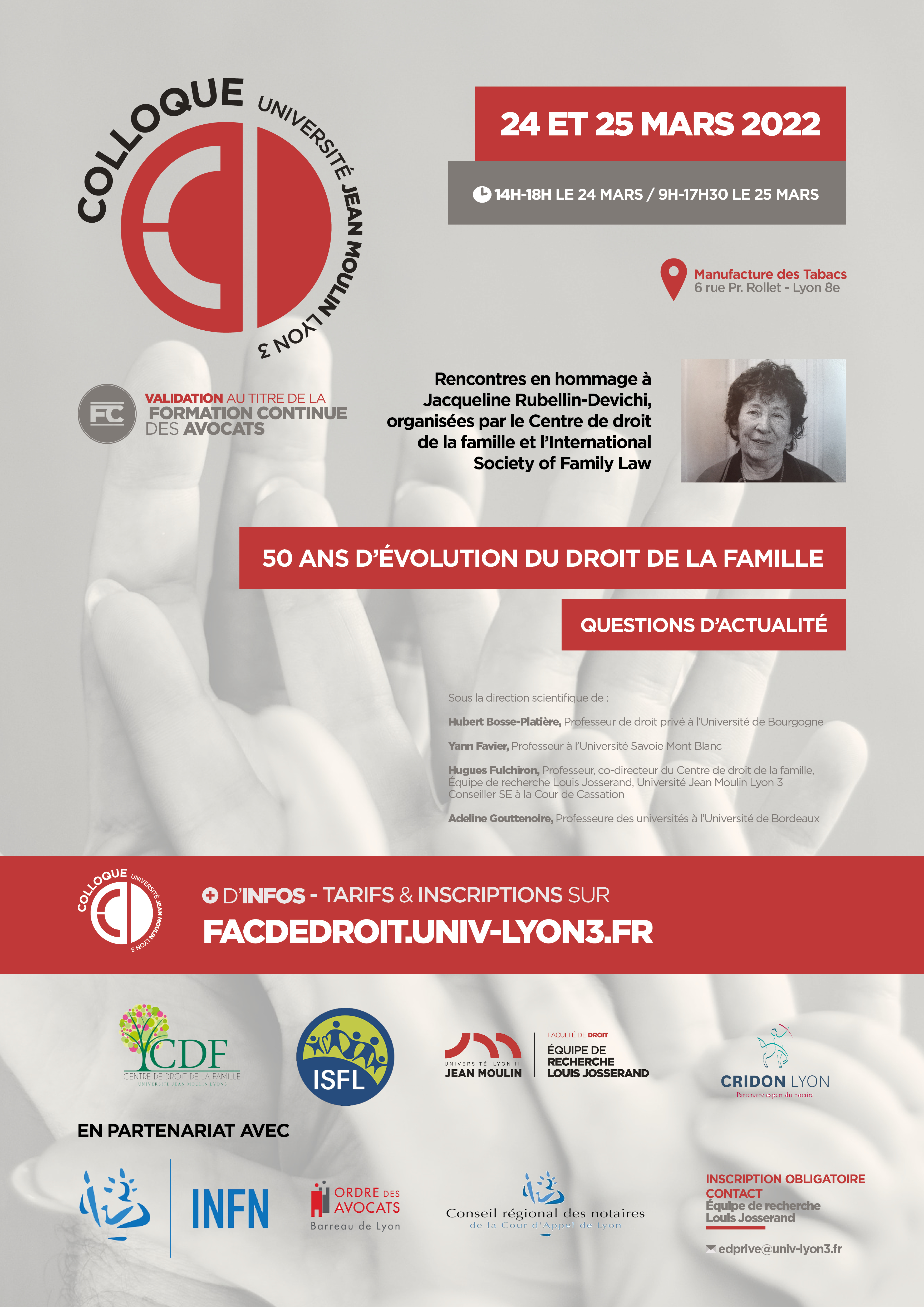 Colloque : 50 ans d’évolutions du droit de la famille Rencontres en hommage à Jacqueline Rubellin-Devichi