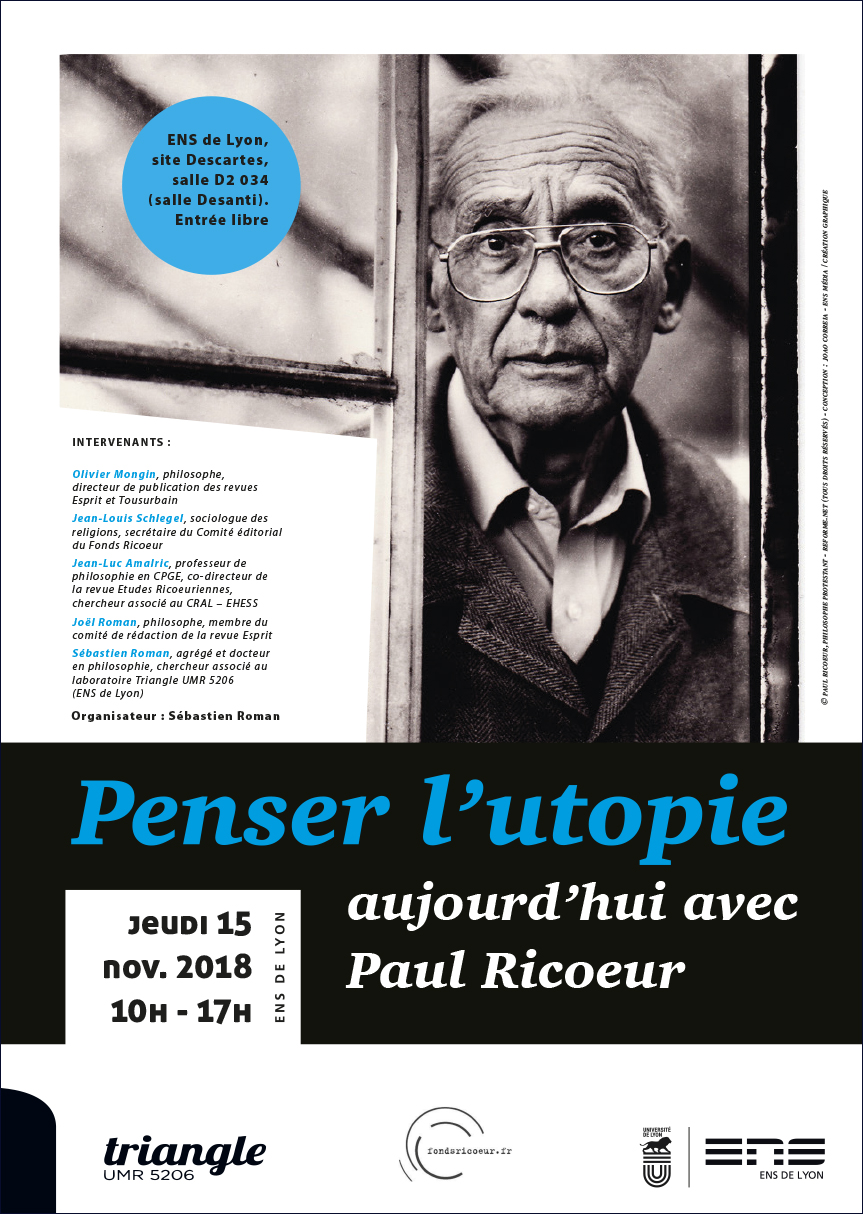 - 11h15-12h00 : Olivier Mongin (philosophe, directeur de publication des revues Esprit et Tousurbain), « L’utopie dans le parcours de Ricoeur. Du principe espérance au principe responsabilité »