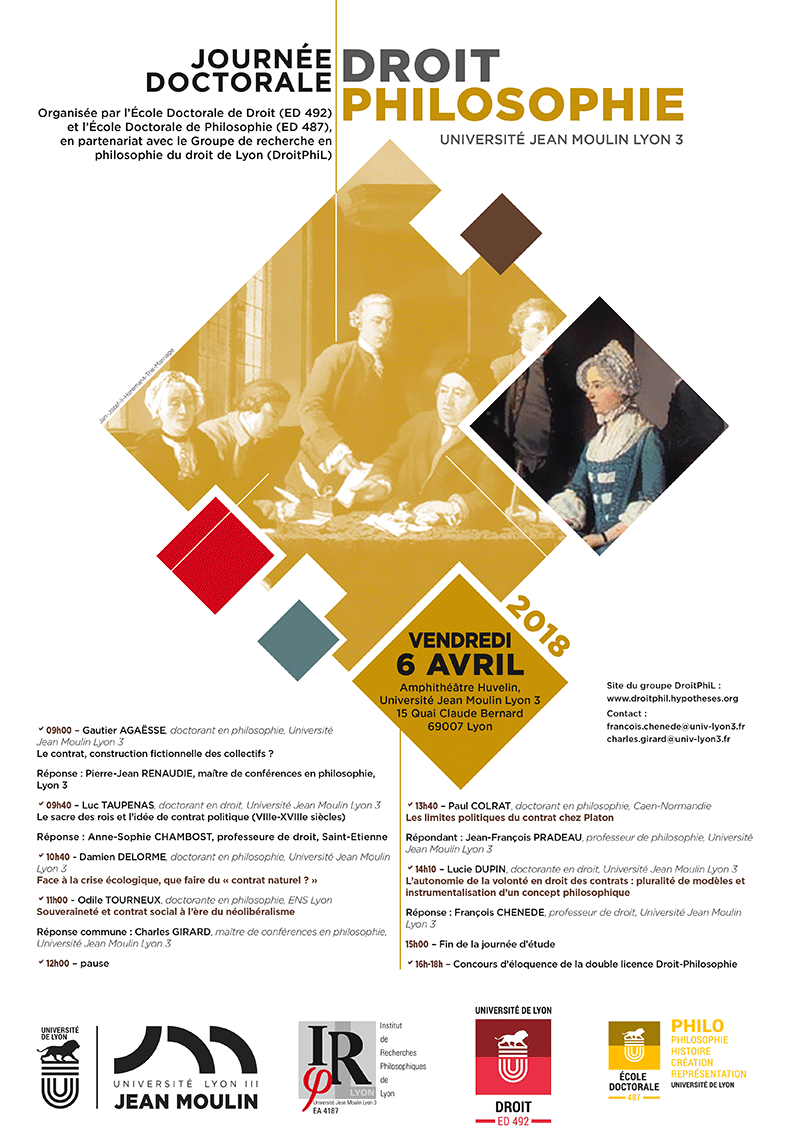 La 13ème édition de la Journée doctorale annuelle Droit-Philosophie de l’Université Jean Moulin portera sur « Le contrat ». Des doctorants des écoles doctorales de droit et de philosophie présenteront leurs travaux sur ce thème, des enseignants-chercheurs juristes et philosophes leur répondront.