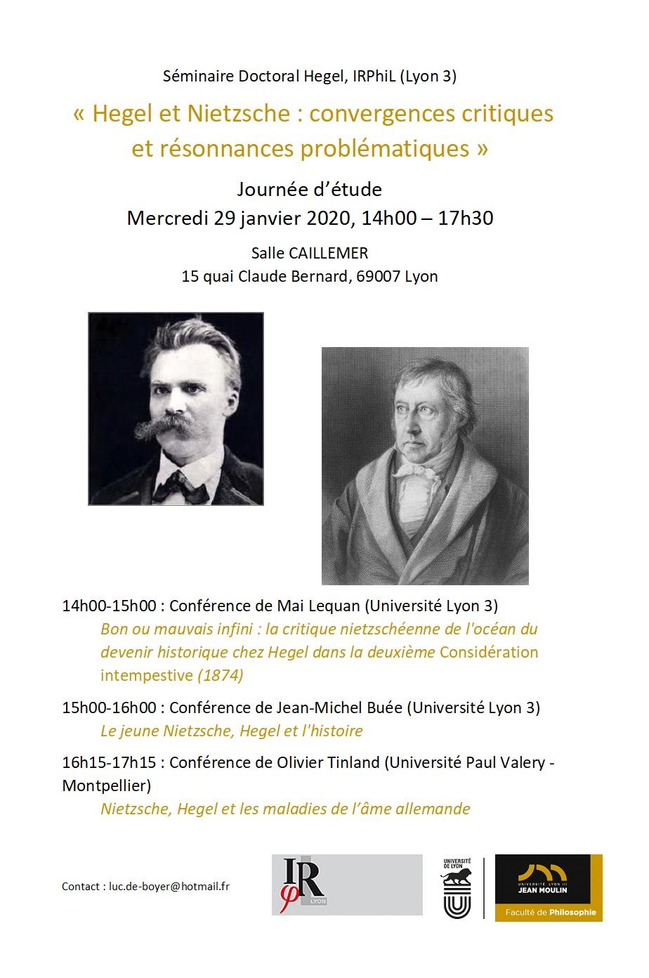 - 16h15-17h15 : Olivier Tinland, "Nietzsche, Hegel et les maladies de l’âme allemande"
