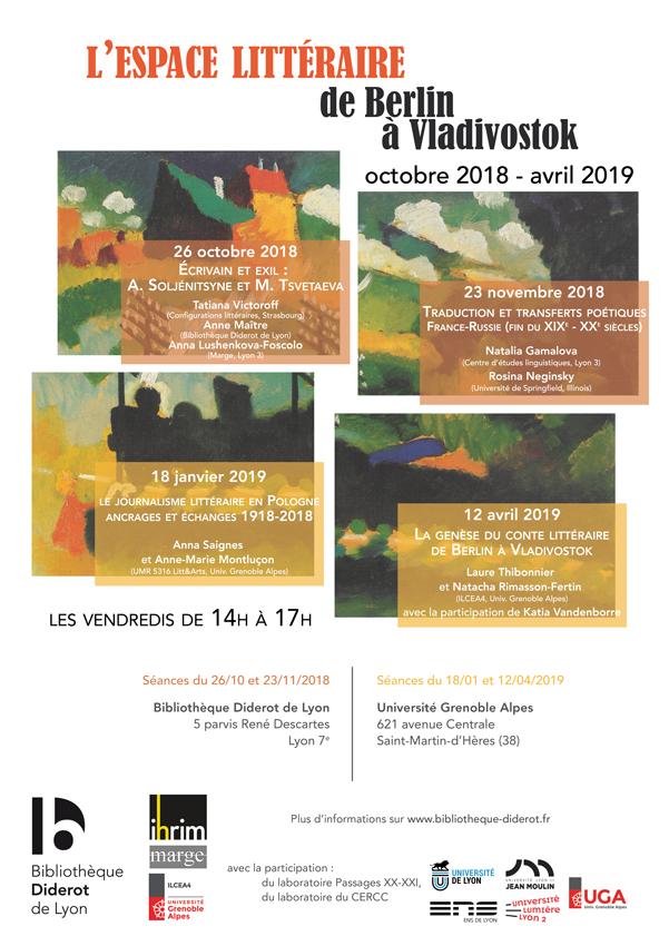 - Séminaire inter-laboratoires | L'espace littéraire de Berlin à Vladivostok 12 janvier 2018 - 6 avril 2018