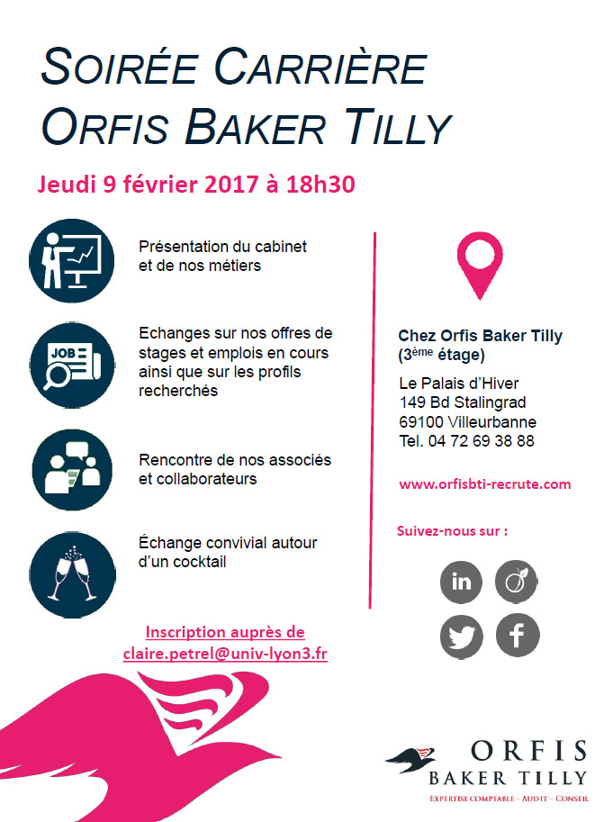 Soirée Carrières ORFIS BAKER TILLY : étudiants et diplômés de l'iaelyon, inscrivez-vous !